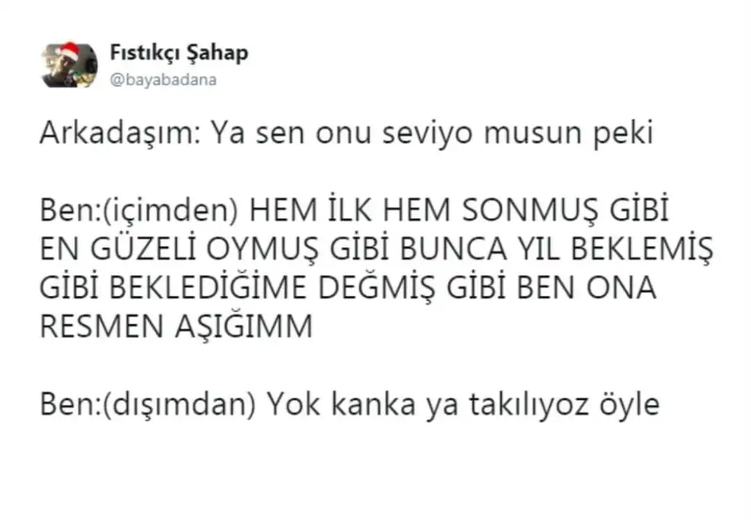 Ama burada bir problem var sen ilişkiye 'oylesine takılıyoruz yeaa' gözüyle bakmiyorsun.