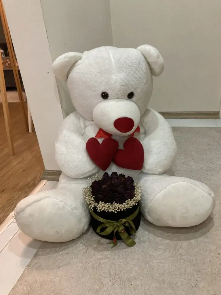 Aynisini yasadim desem malum siteden yollamisti dogum gunumde. Zaten böyle hediyeler sevmem bir de tasinacaktim bunu nereye sigdircam diye sinirlenmiştimgülsem mi ağlasam mı bilemedim. Erkek arkadaşımla saçma bi konuşan tartıştık. 33 yaşındayım bugün peluş ayının koluna sıkıştırılmış Gül almış gelmiş ben şok