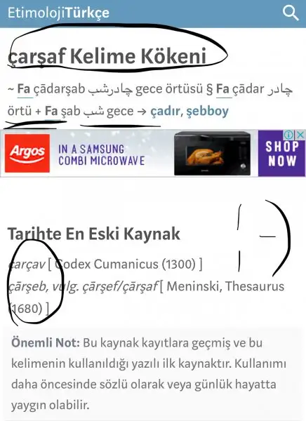 Çarşaf çarşeb kökünden gelir ve gece örtüsü(yatak örtüsü)demektir. Bu nedenle Türkçeye de çarşaf diye aktarılmıştır zaten.