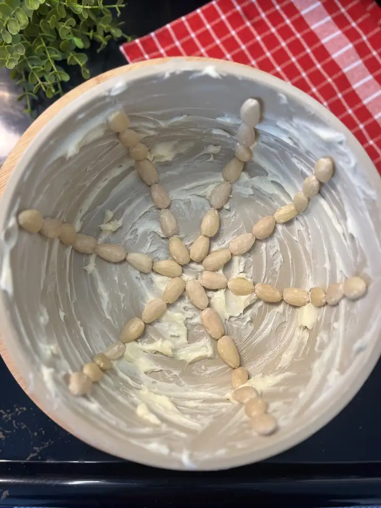 Daha sonra pişirme kabına tereyağ sürelim. Bademleri dilediğimiz gibi dizelim.