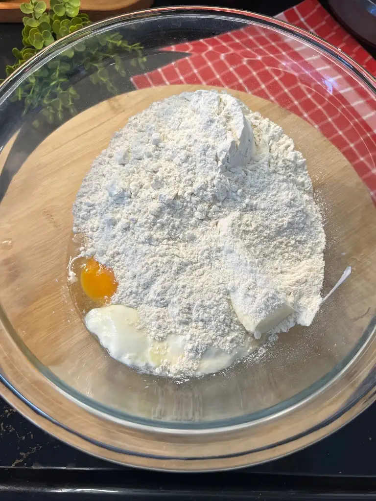 Perde hamuru için tüm malzemeleri kaba alıp sert bir hamur yoğuralım.