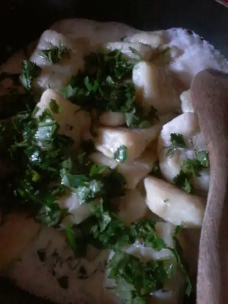 Gnocchilerimizi içine atıyoruz , doğradığımız maydanozları da üstüne serpiyoruz