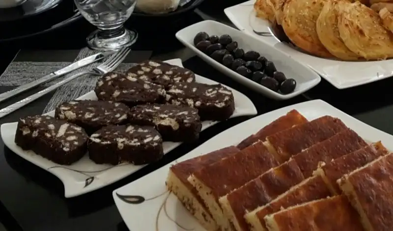 Meyveli kek canım o . Zeytinli omlet deneyin derim. Tabi benim gibi zeytin sevenlerdensenizBir kuş sütü eksik galiba bu sofrada.Her çeşit omlet duydum ama zeytinli omlet duymamıştım.Değişik olmuş.Sofrada kek benzeri birşey var onu anlayamadım.Tuzlu kek galiba.Sunumlar süper.Elinize sağlık.Başarılar dilerim.