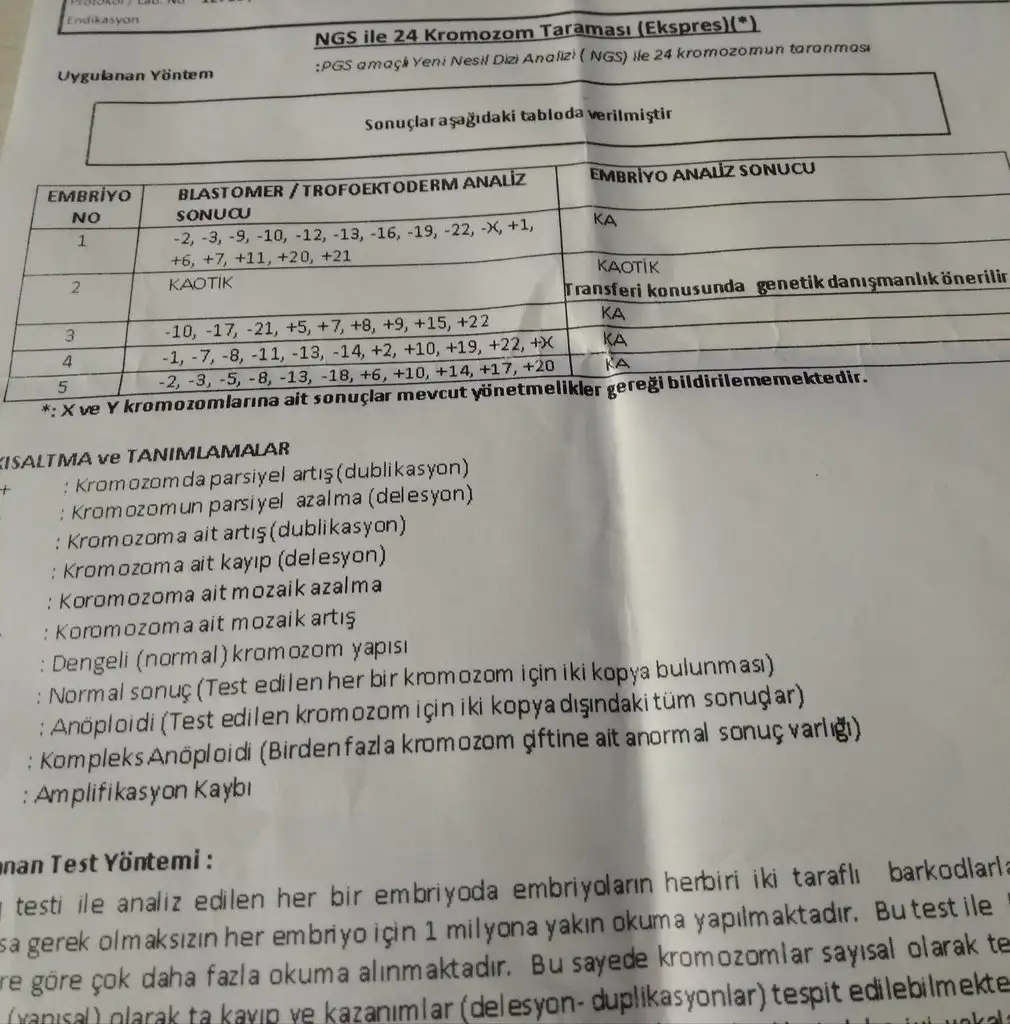 Mikrogenle de konustuk raporumda da yazıyor ngs tekniği diye ama buraya yükleyemiyorum resmini hata veriyor canım.Bildym kadaryla 2 3gune gelen fish tekiniyi oluyo ve 6 yada 9 kromozm bakiliyo belki siz yalnis anladinz