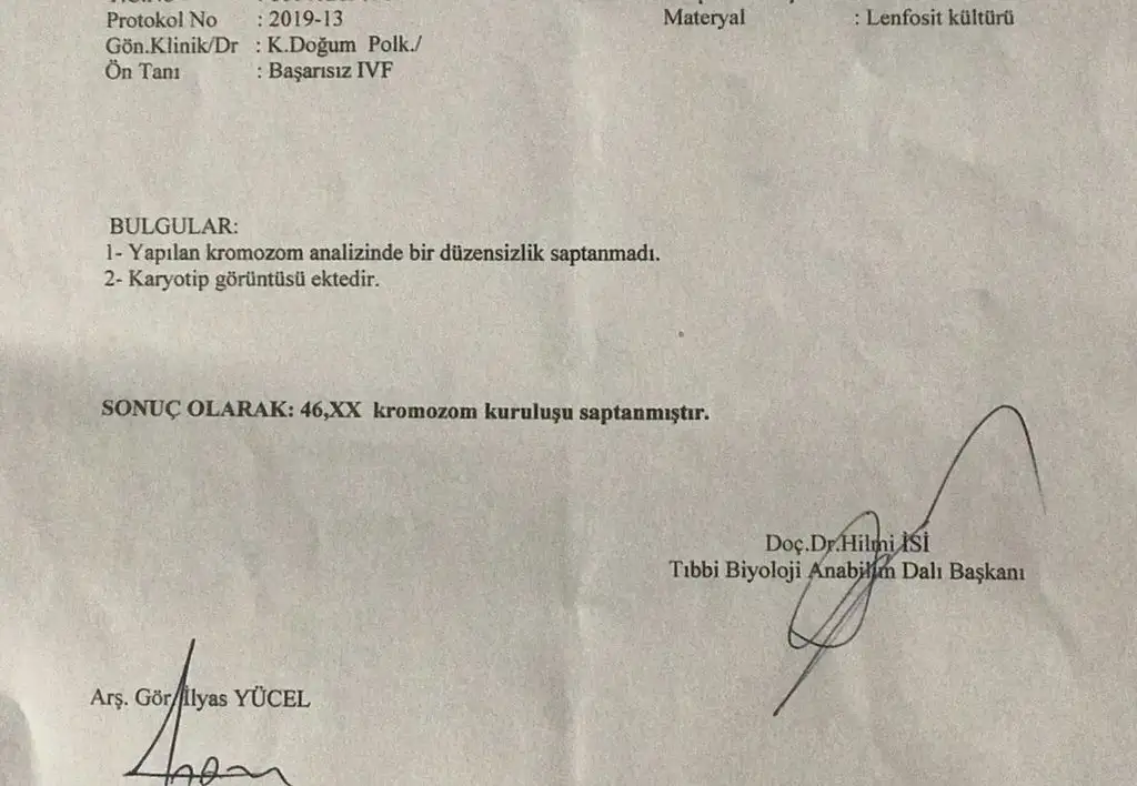 Eşimde de bende de herhangi bir kromozomal sorun yok lakin 13 embriyomun 3 tanesi 5. güne gidebildi 3 embriyodan 1i normal geldi sadece... onunla devam ediyoruz işte...
