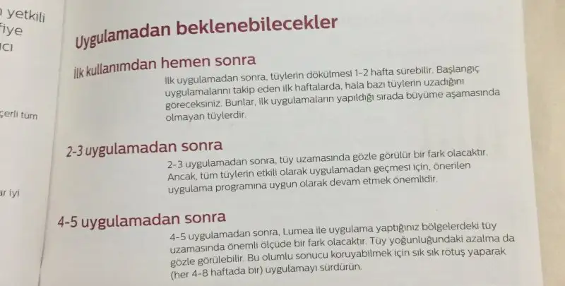 philips lumea 2007 kullanıyorum, 2 haftada 1 yapılabilir, ağdadan sonra yapıldığında etkisi daha hızlı görülüyor. İlk kullanımda azalmaları fark edebiliyorsunuz, kısa bir sürede mucizevi sonuç vermiyor, Azalma ve geç çıkma oluyor ama kısa sürede tamamen bitme yok. Benim 4. kullanışım (acelem olmadığı için çok sık yapmadım) şuan % 30'u çıkmıyor, çıkanlarda eskisi gibi siyah sert değil. İnternet fiyatları da, mağazalara göre daha uygun ben 950 ye almıştım.Bende almayı düşünüyorum ama bide kullanan arkadaşlar hangi modeli kullandıklarını da yazabilir piyasada birden fazla model var kafan karıştı