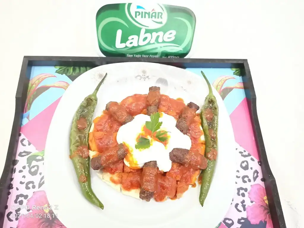 Öncelikle köfteyi yoğuruyoruz ve şekil veriyoruz, benim yapıp buzluğa attığım köftem vardı onu kullandım. Köfteleri az yağda kızartıyoruz. Onlar kızarırken salçalı sosumuz için tereyağını eritip salçayı koyup su ekleyip biraz kısık ateşte koyulaşana kadar pişiriyoruz. Diğer yandan yoğurdun içine labneyi koyup karıştırıyoruz. Pideyi ister tavada ister tost makinesinde ısıtıyoruz. Şimdi birleştirme kısmına geçiyoruz. Pideleri küçük parçalar halinde doğruyoruz, tabağa alıyoruz. Üzerine salçalı sostan gezdiriyoruz ve köfteleri diziyoruz. Yoğurdu koyup salçalı sosu tekrar gezdiriyoruz. Afiyet olsun.Eki Görüntüle 2815756 Eki Görüntüle 2815757 Eki Görüntüle 2815758 Eki Görüntüle 2815760 Eki Görüntüle 2815761 Eki Görüntüle 2815762 Eki Görüntüle 2815763 Eki Görüntüle 2815764 Eki Görüntüle 2815765 Eki Görüntüle 2815766 Eki Görüntüle 2815767 Eki Görüntüle 2815768 Eki Görüntüle 2815769 Eki Görüntüle 2815770 Eki Görüntüle 2815771 Eki Görüntüle 2815772