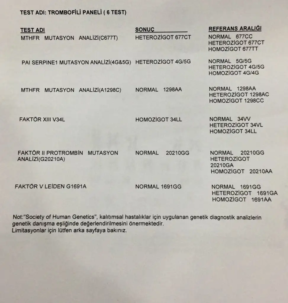 Geçmiş olsun şimdilik ecopirin kullanın gebelik olursa başka bir dr a daha görünün iğne gerekebilir. Bana factor v önemli dedi hiçbir şey vermedi ama ben yine de ecopirin içiyorumMerhaba,kasımda ayında kimyasal gebelik geçirdiğim için ben de test yaptırdım şu şekil çıktı genetik doktoru yoktu yorumlayamadı kadın doğumcuma gösterdim ecopirin 150 kullan yeterli dedi heryerde farklı yazıyor insanın içinde bir kuşku oluyor![]()
