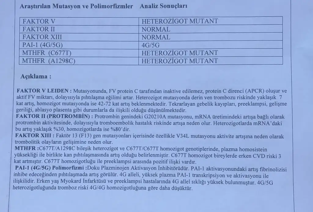 Çok teşekkür ederim gebelık oluşunca mı başlanıyor yoksa oncesınde mı başlamak gerekir o konuda bilginşz var mıÜç gende mutasyon var. Kan pihtilasmaniz var. Bundan sonraki gebeliklerde kan sulandırıcı iğne kullanılacak büyük ihtimalle. Geçmiş olsun.