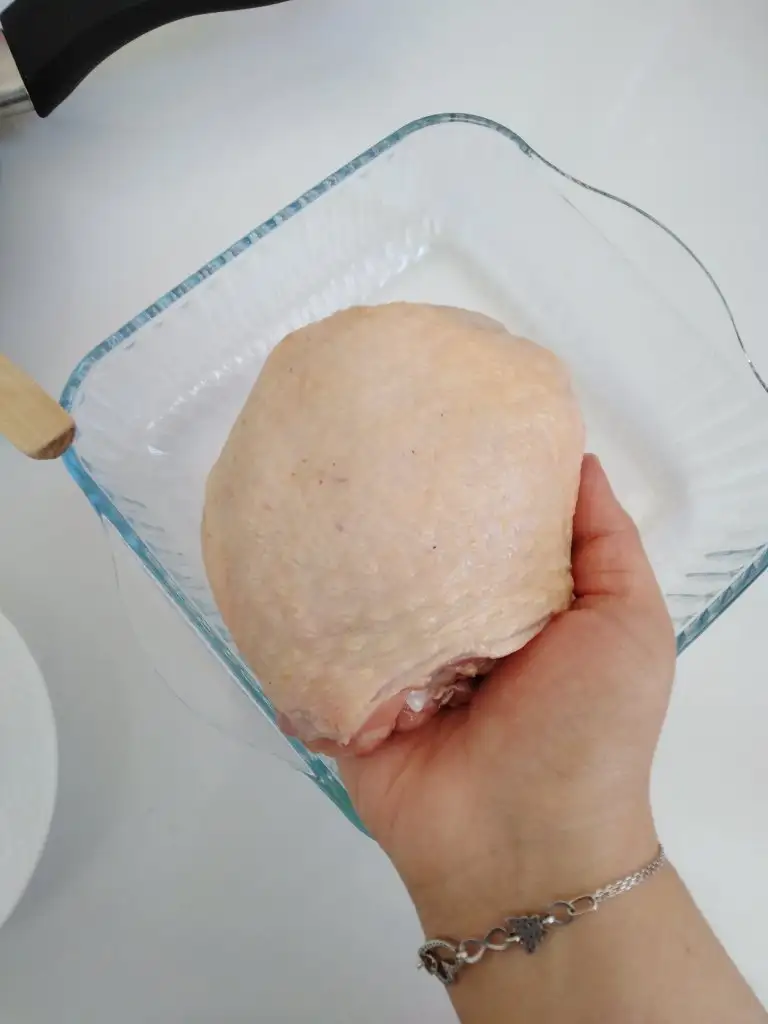 İlk olarak kemiği alınmış ve açılmış kalçalı butlarımızı biraz yağ, tuz ve karabiberle marine ediyoruz. (Ben kemikleri kasapta aldırdım. İsterseniz kendinizde yapabilirsiniz)