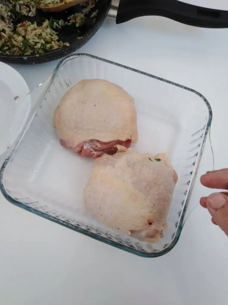 Tavukları dinlenmesi için dolaba kaldırdıktan sonra bir su bardağı pirinci az tuz ve suyla ıslatıp bekletiyoruz.