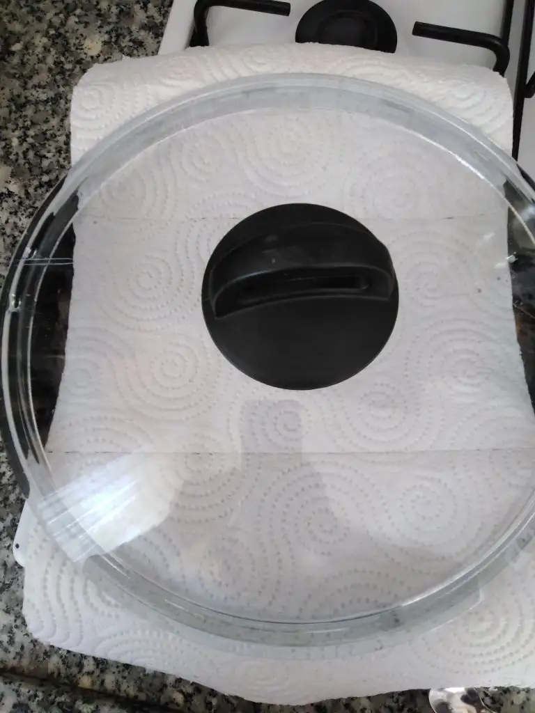 Pişen iç pilavımıza havlu kağıt koyup 10 dakika demlendiriyoruz.