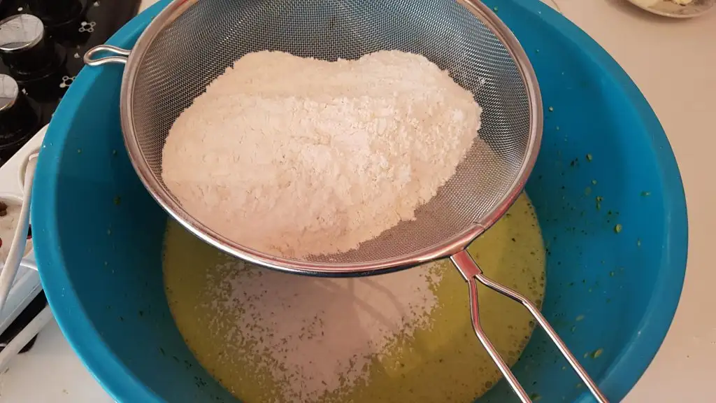Daha sonra vanilyayı unun içine ilave edip karıştırdıktan sonra bir elek ile karışıma ekliyoruz. Yine çırpıcıyi çalıştırmadan karıştırıp, ardından çırpıcı ile 2 dk pürüzsüz olana kadar çırpıyoruz.