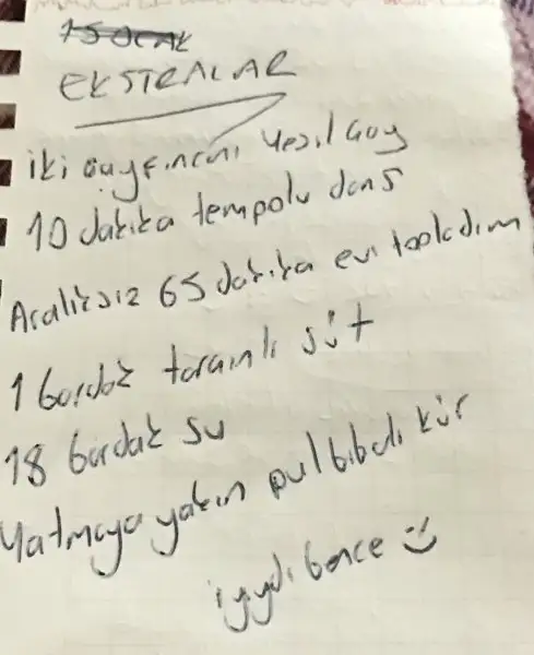 Su sana baya iyi gelecek desemine bak hiç senin dediğin gibi düşünmemiştim bu arada bu gün 2,5 lt fazla su içmeyi başarabildim elhamdülillah