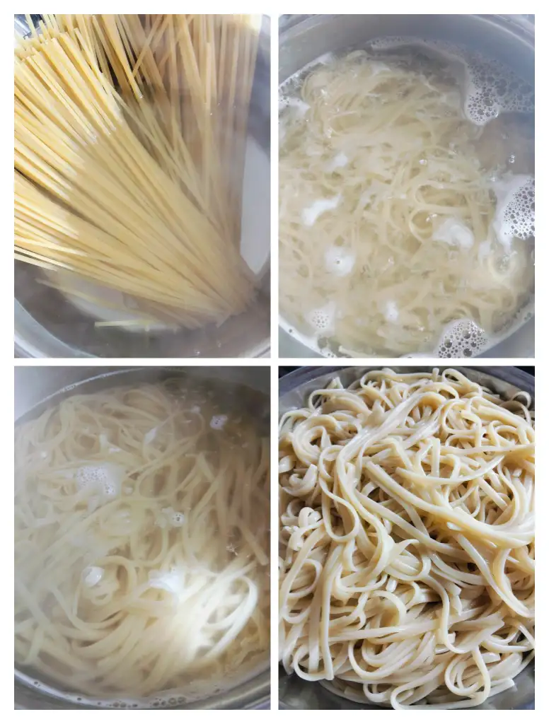 -makarnayı tuzlu suda haşlayıp üzelim. 1 kepçe kadar haşlama suyundan ayıralım.