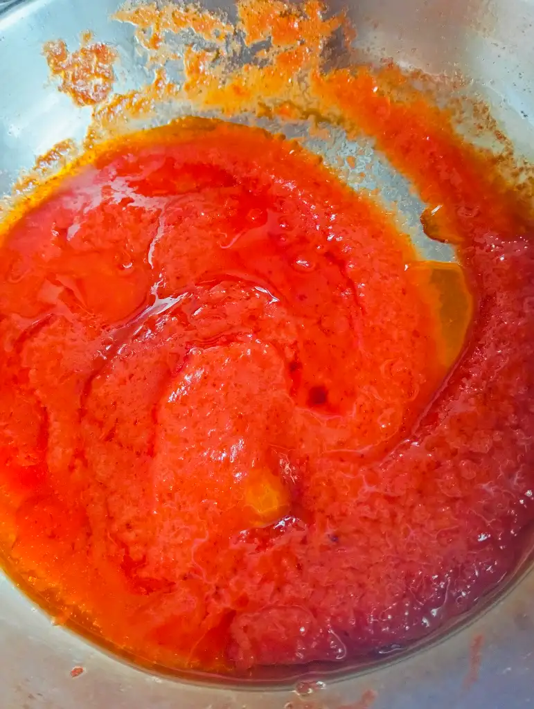 -Sosu İçin tavaya 2 kaşık kadar sıvıyağ, koyup 1 kaşık salça ve 1 kepçe ayırdığımız makarna suyu ile sos yapalım. Ben çok az kekik te koydum.