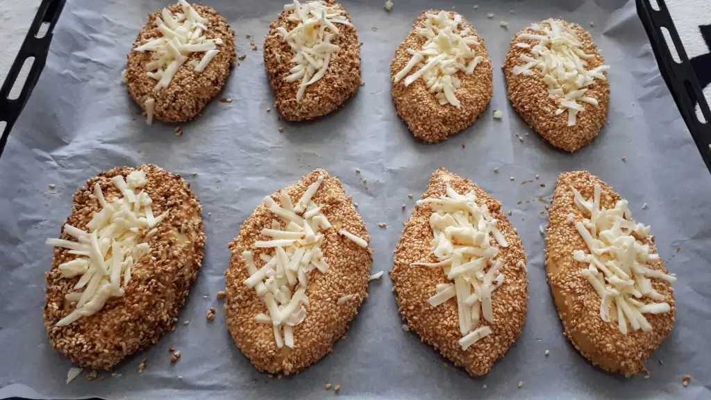 ~Olusturulan ciziklere rendelenmis kasar peyniri yerlestirelim.