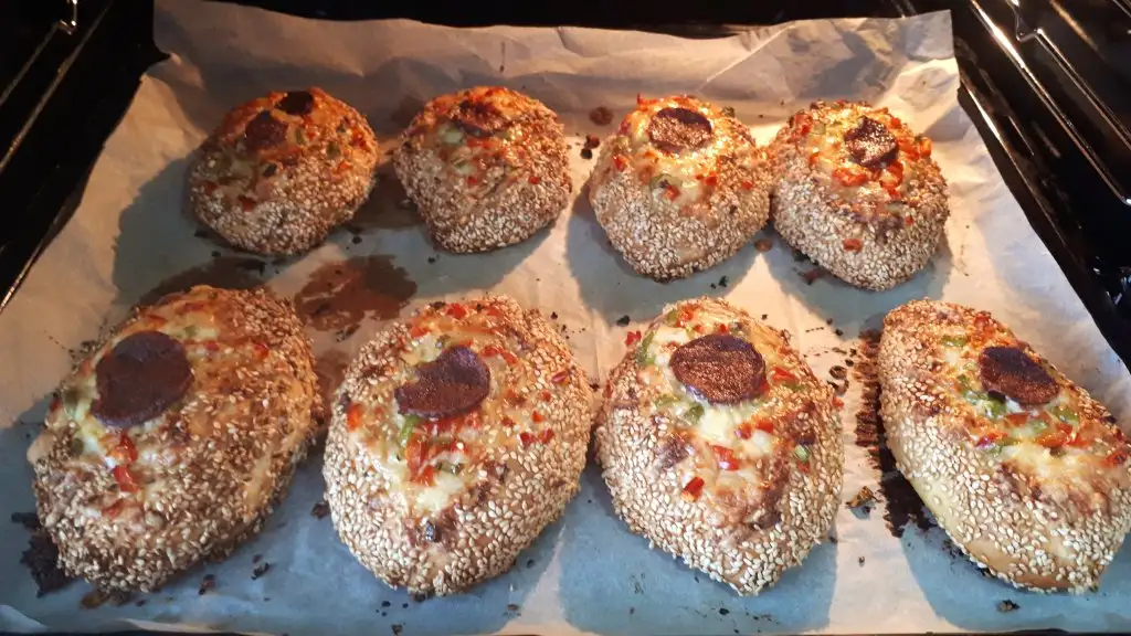 ~ Daha sonra minik dogradigimiz biberler ve sucuklari tercihe gore uzerlerine koyalim.
