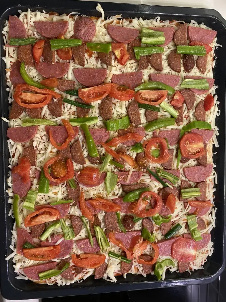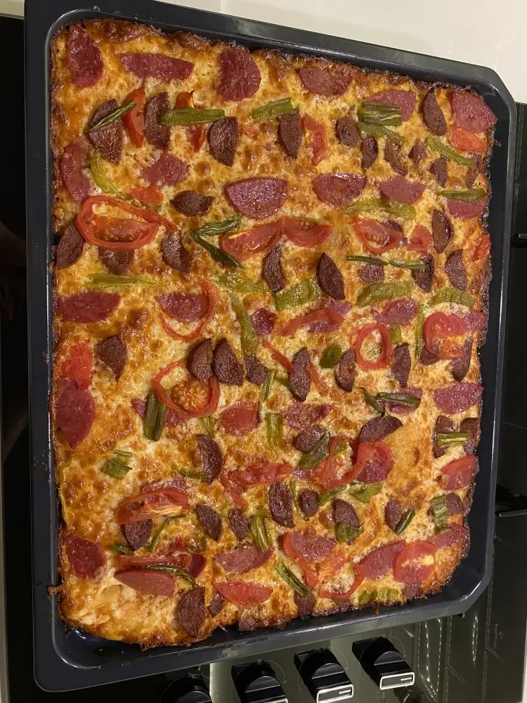 4 yıldır yemek topiginde tarif paylaşıyorum hiç kotu yorum gelmedi .tarif sahibi kendi istedi bunuHamur guzel pismis ama biraz kalin bi de ben malzemeleri az buldum mozarella veya kasar ne koyuyorsaniz onsuz pizza olmaz bence. Soganlari da tum tum yakistiramadim tek halka olarak koysaniz daha iyi olur bence