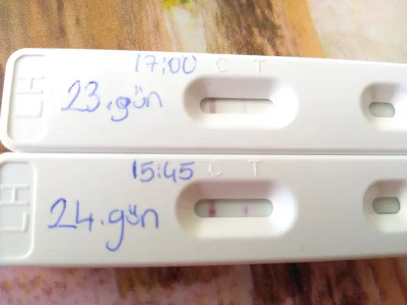 Canım orucluysan sıvı atımı vücudumuzda tahminim öğleden sonra atılıyor bende öğlen yaptığımda daha silik çıkıyordu o yuzden akşam yapmaya basladim seninki dün e gore daha koyu bu zamanları değerlendirin insalinş test yapmaya da devam beraberbende bugun 20.gun ayni saatte testi yaptim silik cikti dune nazaran canim sikildi icime sinmedi az once yine yaptim dune nazaran biraz daha koyu cikti kafam allak bullak oldu