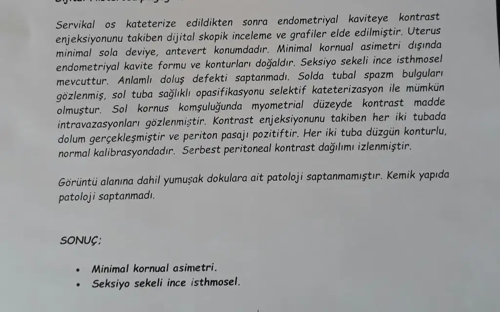 Ben erzurmdayim inşallah inşallahIstanbuldamisiniz sizin de guzel cikar insallah herseydaha doktora gostermedm ben de bakalm ne dicek histereskopi istemez ins