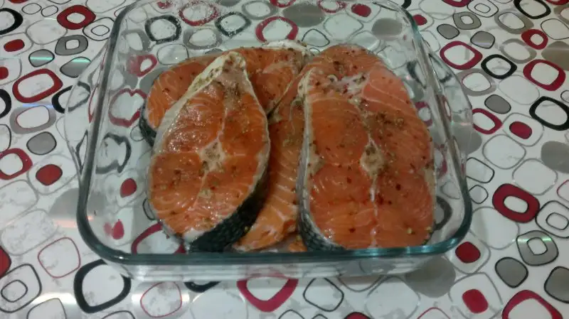 - Parçalara ayrılmış olan somonları bir kabın içerisine alın.