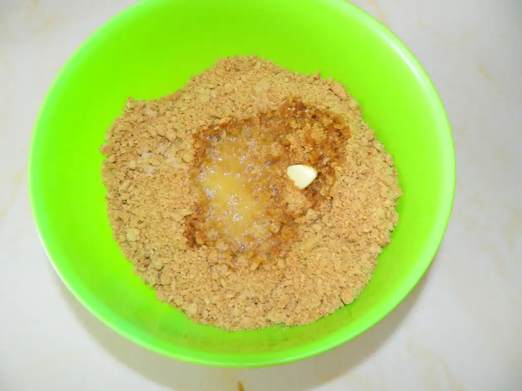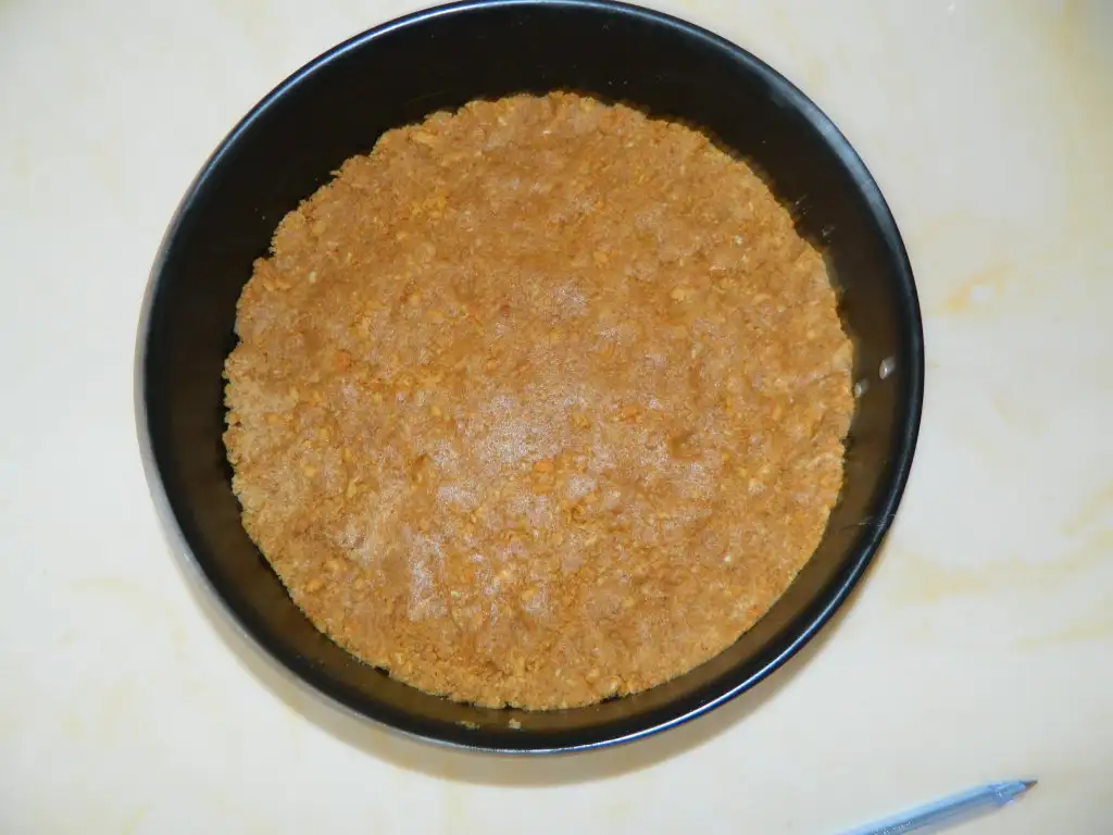 İlk olarak bisküvilerimiz rondoda çekip süt ve margarinle ezip kelepçeli kalıba bastırarak yerleştiriyoruz