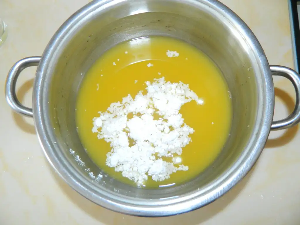 Daha sonra portakal sosunu hazırlıyoruz 2 bardak portakal suyu 2 kaşık şeker ve nişastayı kaynayana kadar karıştırıyoruz