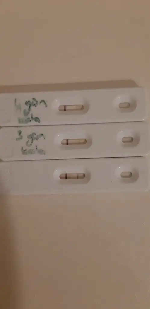 Merhaba herkese ben 4 gundur ucuz testlwrle takip ediyordum testimde koyulasma oluyormu diye ilk testim baya silik çıkmıştı hatırlayan varsa bugun adet gunum bugunku testimi de ekliyorum yukseliyordur degilmi kan degerim hastaneye hala gitmedim bu gidisle de gidemicez gibi uzun sure bu ay hamile kalanlar artik ilk cinsiyet ogrenmeye gider boyle giderse