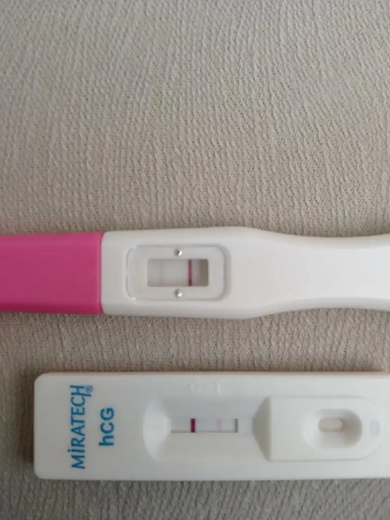 Kızlar merhaba size önemli bir sorum var tam 4 gündür sürekli gebelik testi yapıyorum ve her yaptığımda silik pembemsi bir çizgi görünüyor ama asla kontrol çizgisi kadar koyu olmuyor rengi. Genellikle 26-27 günde bir adet oluyorum ve geçen ay yani en son 27 temmuzda adet oldum ve bugün 29.gün hala olmadım. Adet olucakmış gibi kasıklarımda sancı var yaklaşık 1 haftadır. Asıl kan tahlilinde çıkıyor sonuçlar biliyorum ama doktora gidip olumsuz cevap almaktan korktum açıkçası ama bu testler niye böyle çıkıyor anlamıyorum yani yanlış pozitif veriyor olabilir mi yada adet donemindeyim diye onun hormonu etkiliyor olabilir mi kafam çok karışık size en son yani bu sabah yaptığım testlerin fotoğrafını koyuyorum iki tane yaptım bunları yorumlarsanız sevinirim çok teşekkür ederim bu arada adet agrimin olması da beni umutsuzluğa düşürüyor tuvalete gidiyorum oldum diye bir bakıyorum beyaz yada şeffaf bir akıntı gelmiş oluyor kafam çok karışık bugün aile hekimliğinde hemsireyle konuştum testleri gösterdim pozitif gebelik var dedi ama bilemiyorum adet ağrısı çok fazla çünkü bu arada sonuçlar ilk 5 dakikada çıkan sonuçlar