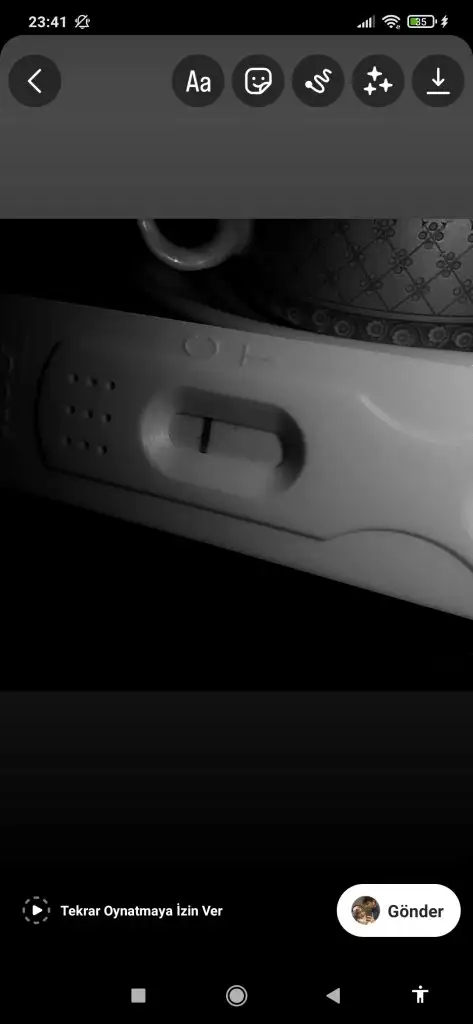 Ya arkadaşlar merhabalar aylar oldu ilk defa böyle bir silik çizgi gördüm sizce hamile miyim endometriozisim olduğu için umutsuz hissediyorum bugün bir umut bunu gördüm bugün adet olmam gerekiyordu olmayınca erken gebelik testi yaptım fikrinizi alabilir miyim 🙏