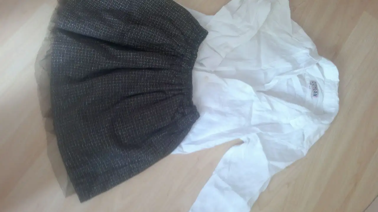 Beyaz önü tül Zeyland-H&M çizgili, Zara tül çiçek ayrıntılı kalpli. Bluzler 6 yaş