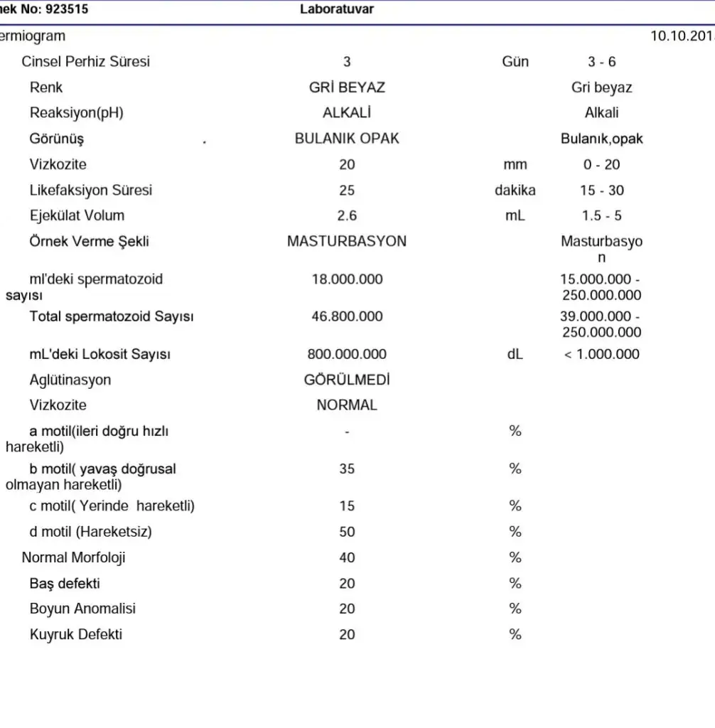 Bende tam simdi paylasacaktim canim, dr bisi demedi yorum yapmadi simdilik,3 ay kullan sonuclarina gore tekrar konusuruz demisticanım eşinin değerlerini yazar mısın? Sayısı ve morfolojisi kaç?