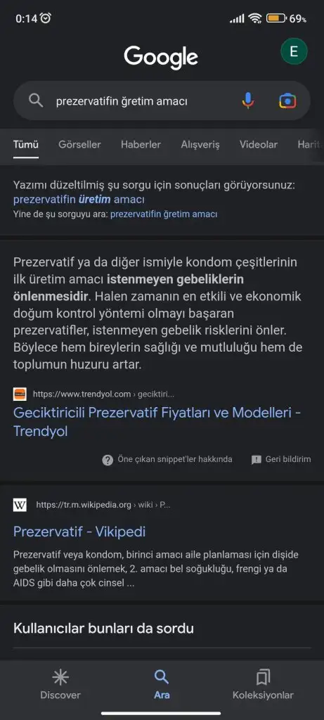 27 yaşındayım öncelikle. Sizin bu prezervatifi genelevde kullanır kafanız nedir ya? Doktorlar gwri çekilme yönteminin korunma yöntemi olmadığını, prezervatifinde hastalıklarla beraber gebelikten korunma amaçlı üretildiğini, bahsettiğiniz gibi benden büyükseniz sizin bilmeniz gerekir. Ancak siz et ete değecek kafasını savunup durduğunuz sürece değişmeyecek zihniyetiniz. Prezervatif kullananları geneleve yakıştırırcasına imanız aşırı tiksindiri. Burda 16 17 yaşında genç kızlar okuyor. Kalkmış prezervatifin kullanım amacından şaşırıyorsunuz.iç dünyanda ne yaşadığını bilmiyorum ama ergen olduğun kesin, belkide senin yaşın kadar benim üyeliğimin yaşı vardır ne dersin ? Elindeki klavye ile ufak bir araştırma yaparsan prezervatifin üretim amacının aids, hıv gibi virüslerden korunmak için yapıldığını ve genelevlerde kullanıldığını anlarsın.
