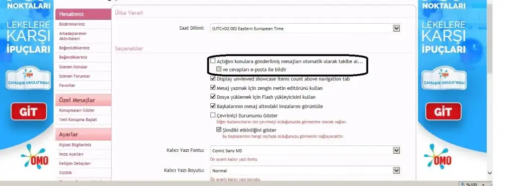 İşaretli yerdeki kutucukları(Açtığım konulara gönderilmiş mesajları otomatik olarak takibe al...