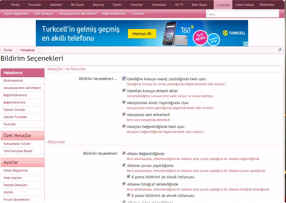 Bildirim seçenekleri ayarlarınıza bir bakarmısınız.Neler için bildirim almayı seçmişsiniz ?