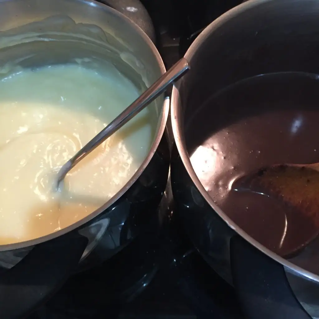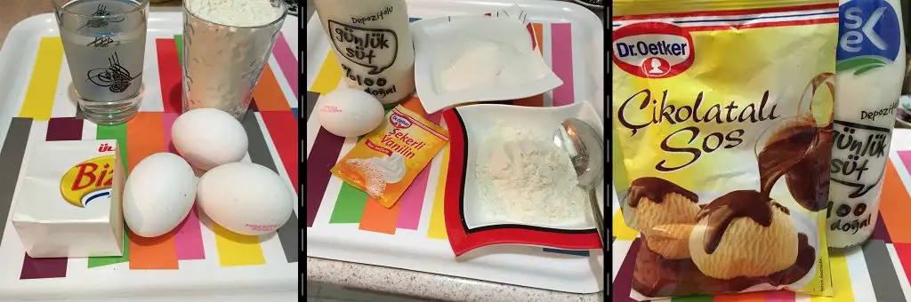 2,5 su bardağı süte, 1 paket çikolata sosu eklenir ve kaynayana kadar karıştırılır, kaynadıktan sonra ateşten alınır.
