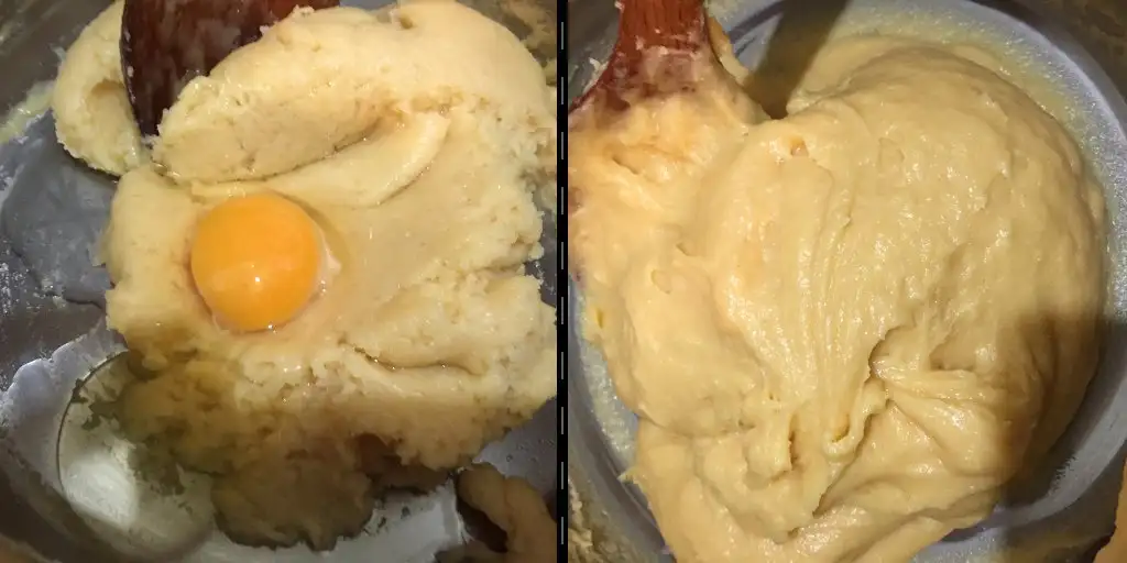 10 dk hamur soğuması beklenir yumurtalar tek tek hamura yedirilir. Yumurtalar büyükse 3 tane yumurta da kullanılabilir, yalnız ***işin püf noktası; hamurun kabarabilmesi için yapışkan bir hamur edebilmek ve bunun içinde yumurta çok önemli.