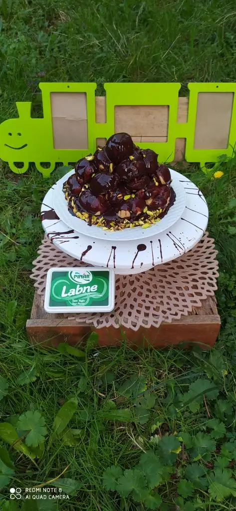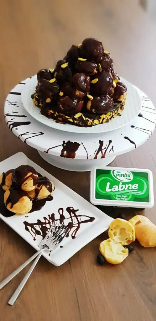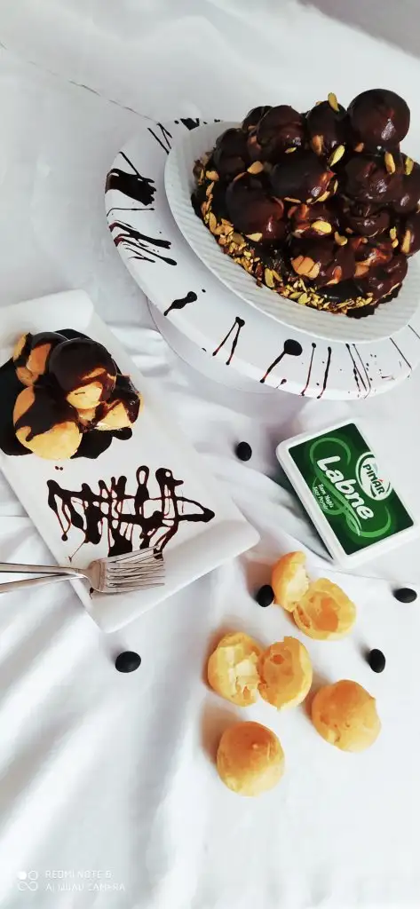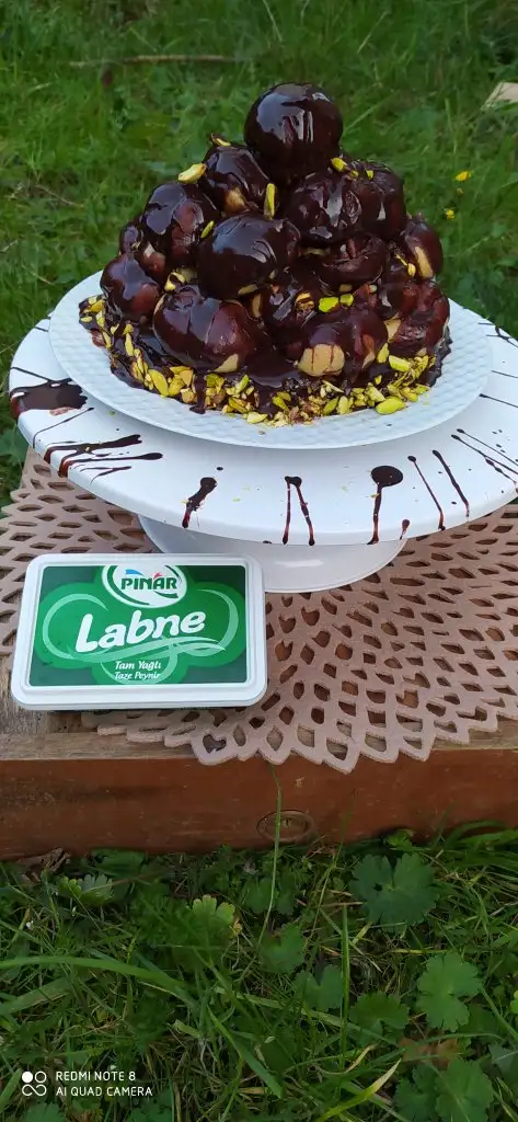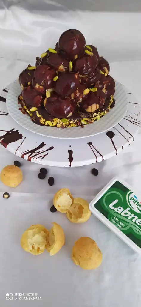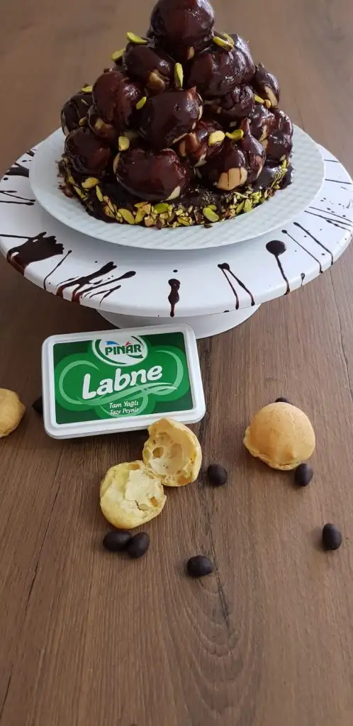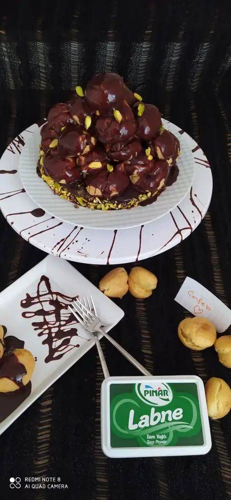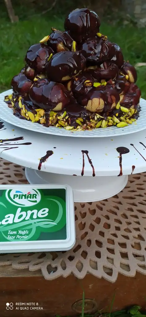 Not:ben hamurunu iki ölçü yaptım,bir kısmını daha sonra kullanmak için.denemek isteyenler krema yarım ölçü hamur için.profiterolunuzun sonmemesi için iyi pisirmeniz gerekir.