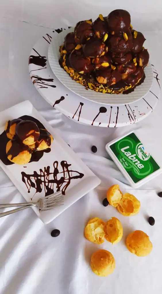 Üzerlerine bolca çikolata sosu dökülen profiterollerimiz servise hazırdır. ❤❤