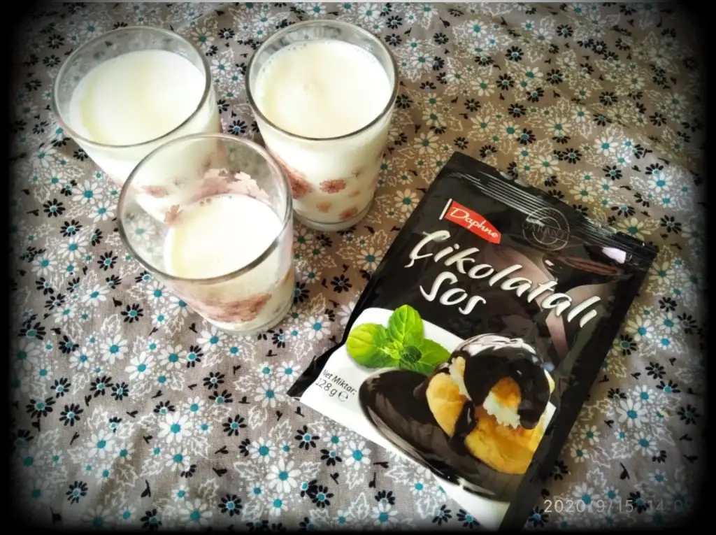 ☘Çikolata sosumuzu pakette belirtildiği gibi 2.5 su bardağı süt ile güzelce karıştırıp ocakta karıştırarak pişiriyoruz ve soğuması için buzdolabına kaldırıyoruz.