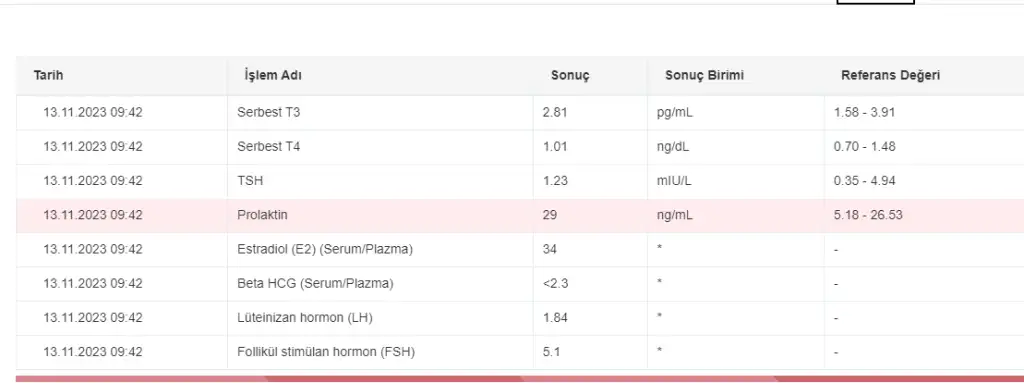 Bakılan değerleri ekledim aşağıya yüksek mi sizce prolaktin nasıl düzene girer benim göğüslerimden hep süt geliyor sıkınca
