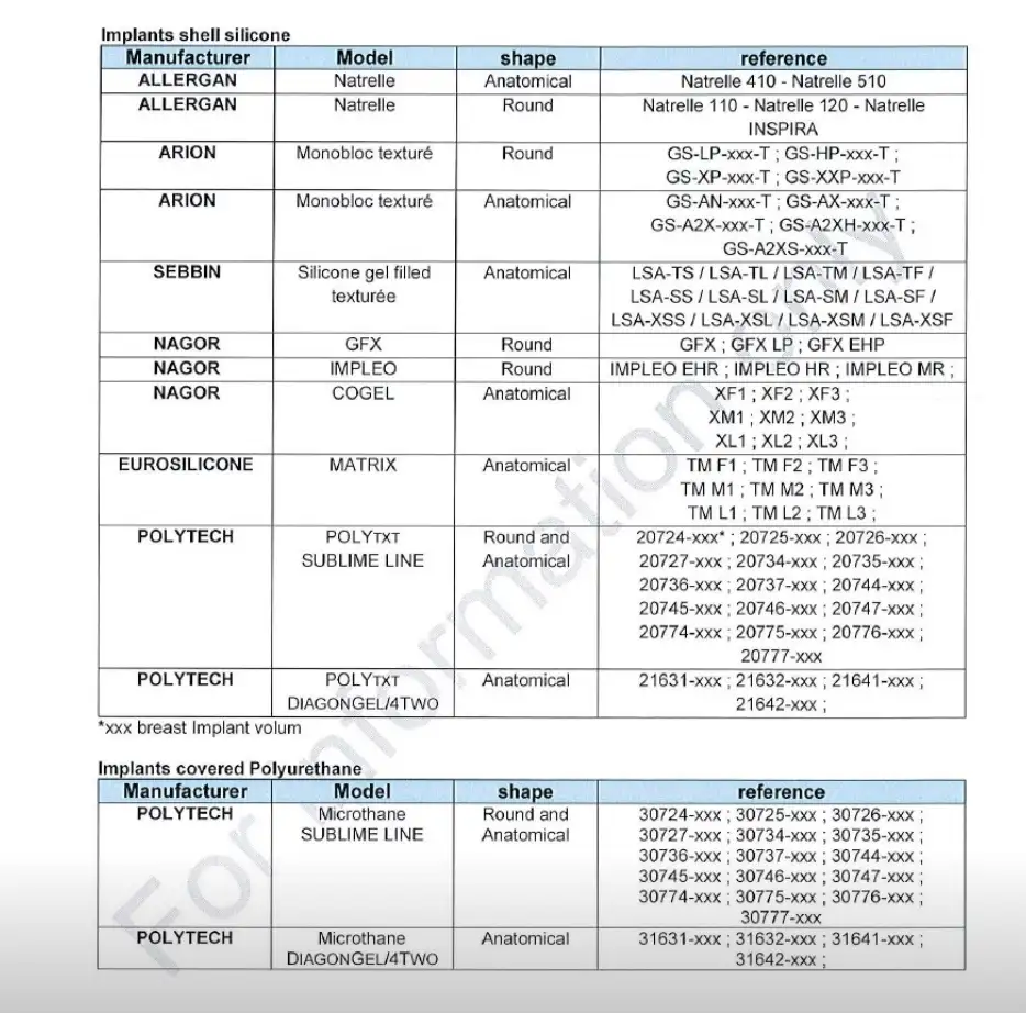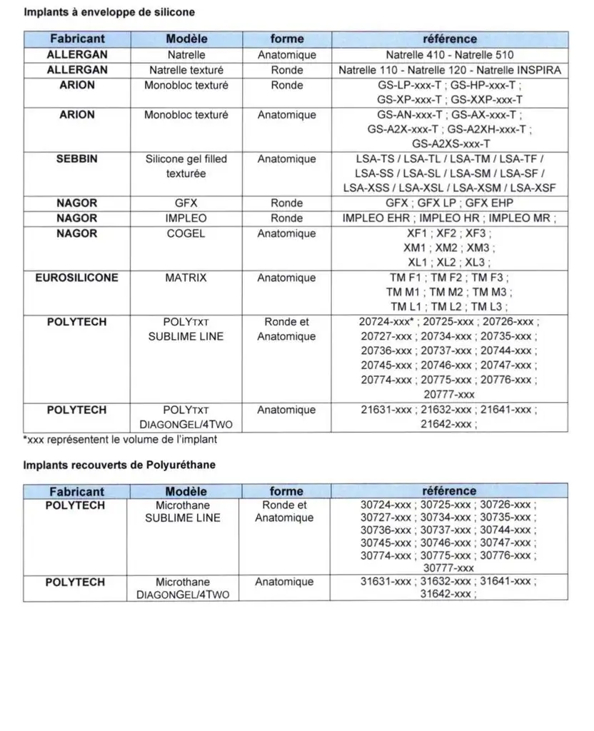 ANSM’in ilk paylaştığı listede Arion, Nagor, EuroSilicone, Sebbin ve Polytech’in bazı modelleri de yer alıyor, bilginiz olsun. Bir sonra ki yorumumda listeyi paylaşacağım. Detayları orada bulabileceksiniz. Markası, modeli, şekli ve referansı yer alacaktır. Ronde yuvarlak protez, anatomique ise damla protez anlamına geliyor.