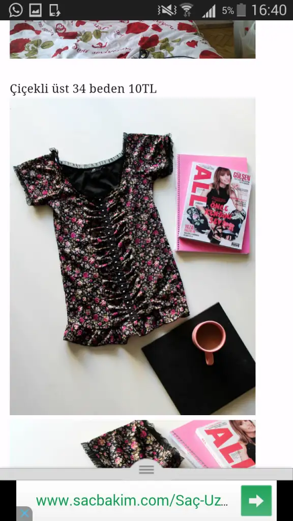 Çiçekli üst 34 beden 10TL