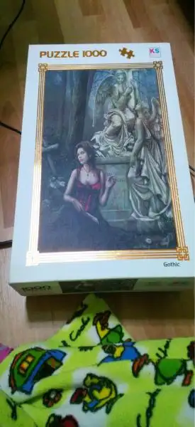 İlk defa yapmaya göre çok zor bir puzzle almışsın canım yaa, bunlar gothic serisi koyu renkler ağırlıkta olduğu için zor oluyor, inan ben bile cesaret edemiyorum düşün...Keşke daha renkli bir puzzle alsaydın...