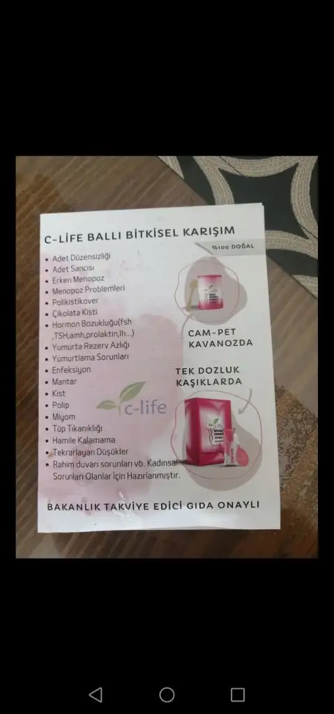 C life diye birşey duydunuz mu hiç? Bitkisel bir karışım aldım ama hsgden sonra elime ulaştı regl döneminde başlıyorsunuz kullanmaya ve çok kişi bunu kullanıp hamile kalmış sağlık bakanlığı onaylı instagram sayfaları var kullanan arkadaşlarım da var zaten onlar önerdiler bana çok faydasını görmüşler bunu alıp deneseniz mi acaba?