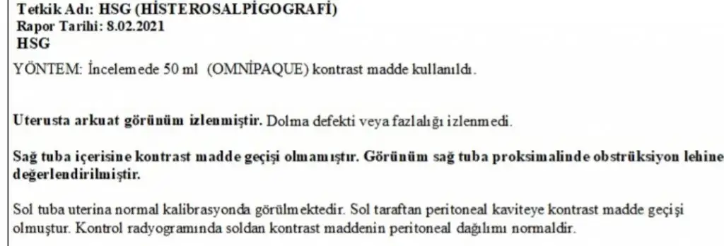 Sanırım sağda tıkanıklık varmış. Üstte yazanı da anlamadım internetten baktım rahmin şekli normalden farklıymış ama gebeliğe engel bişey değilmiş diye yazıyor