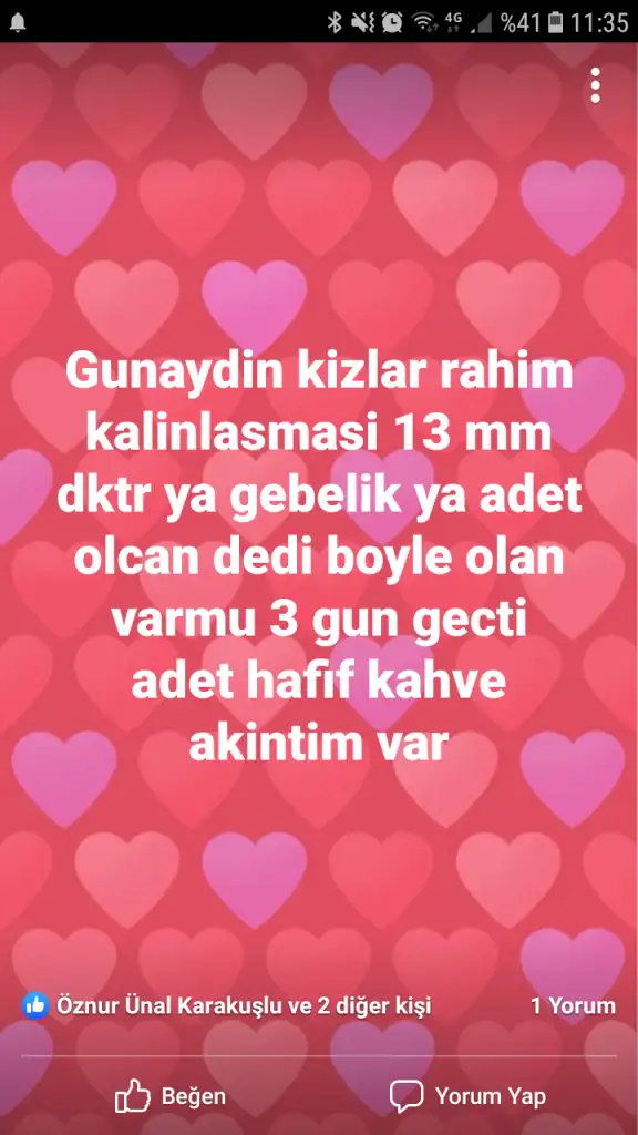 Aynı sekilde rahim kalınlasması var ya regl olucaksın ya gebelik belirtisi demişti