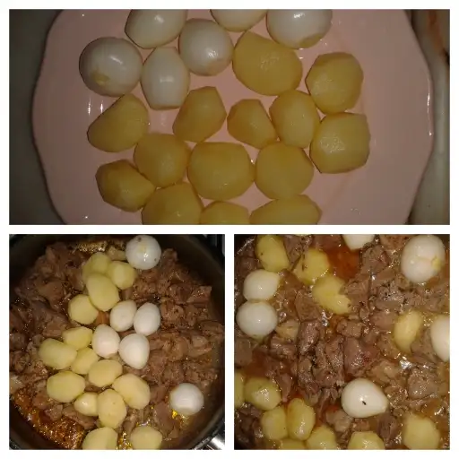 *etler yumuşayınca üzerine patates ve soğanları ekleyip 1 su bardağı sıcak su ile beraber ekleyip tekrar kapağını kapıyoruz,20 dk sonra yemeğimiz hazırr