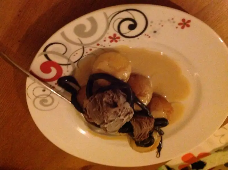 Eşimin dinamit dediği yolu MustafaKemalPaşa'ya düşen birçok insanın tattığı Kemalpaşa tatlısı yiyoruz günlerdir, tatlının üstüne tahin, çikolata sosu ve dondurma koyuluyor, o yüzden herkes tercih etmeyebilir ama fikir olur belki diye buraya ekliyorum, az evvel eşime hazırladığım tabağın fotosunu çektim, normalde dondurma sade tercih edilmeli ama sade dondurmam bitmiş o yüzden çikolatalı koydum.